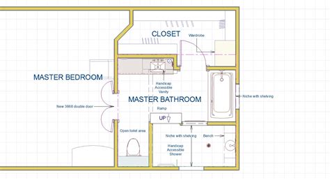 The master bath, which was ~11′ deep x 15′ wide, started with lots of wasted floorspace in the middle of the room, a tiny combo shower/tub, two corner closets, and a very very long vanity with just one sink. If you do, perhaps you might like to try something like the arched entrance you see here. 20' x 20' master bedroom extension floor plan. 24' x 15' master suite addition floor plan. 99 stylish bathroom design ideas you'll love 99 photos. 100+ fresh ways to decorate with black and white 110 photos. Even with larger square footage, bathroom design can be boring. In an 8'x12' space, this master bathroom floor plan is efficient and is flexible enough to accommodate more than one option for door and window location. Contemporary master bathroom with black and wood accents. Guest bedroom + bathroom pictures from hgtv smart home 2020 21 photos. The toilet was kind of walled off, but there was no separate water closet. So let's dive in and just to look at some small bathroom floor plans and talk about them. You can find out about all the symbols used on.